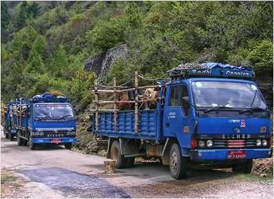 We were able to release 40 cows and oxen which filled four trucks. They were ransomed on the 15th of the third month of the lunar calendar (The most important and auspicious day according to the Pali tradition of Buddhism. Equivalent to the 15th of Saka Dawa [4th Month] of the Tibetan tradition.) May 14, 2014, and were transported from Thimpu (The capitol of Bhutan) to Osellong, in the East of Bhutan (a distance of three days drive) where there is a special place where the animals can live out their lives in peace; being cared for by an organization which protects and looks after ransomed animals.